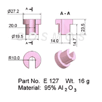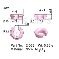 Slotted Eyelet Wire Guide can ease up threading issues in locations where the wire path cannot be set up in the conventional manner, such as when submerged in a plating line. While meeting the pressing need of cutting a slot onto a stocked Flanged Eyelet Wire Guide is viable, the process is not cost-effective. For routine applications, we recommend the creation of a dedicated mold. Representative Slotted Eyelet Wire Guides are depicted below: